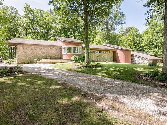 Take a long look at this architect owner designed and built home on 5.854 wooded acres that offers privacy, a one of a kind design, quality and craftsmanship, great space and a vacation setting for year around enjoyment. The open floor plan blends family space and formal space and makes informal dining and gatherings as easy as formal affairs. Windows line the southern side for maximum light and exposure. The unique entry opens to the tiled gathering area, family dining and a charming kitchen. The dining room is open to the great room and beyond to a second great room suited for casual use. A spa room that opens to the large entertainment sized deck area includes a large whirlpool tub in a special setting. The master suite is on the main level as well as one other bedroom. The third bedroom is steps down to a lower level. The property is fabulous and offers some unique features for outside activities.