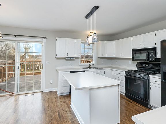 Freshly painted immaculate move in ready Quad-level duplex. This home has real hardwood floors throughout on 3 levels. As you enter the front entrance you are greeted with a spacious living room which leads to the eat-in kitchen. The kitchen has ample counter space and an island for extra seating. Off the kitchen is a nice size deck to admire the fenced in backyard that has an above ground pool, play center and shed. The upper level features the spacious main bedroom with is own access to the full bath and the second spacious bedroom, both with double closets. From the main level you can view the great room on the lower level. this level has attractive tropical zebrawood flooring, a high efficiency gas fireplace with remote, a newly tiled laundry room, bathroom and access to the backyard though another set of sliding doors. Down one more level is the 3rd bedroom/multi-purpose room. Home has lots of natural lighting and curb appeal.