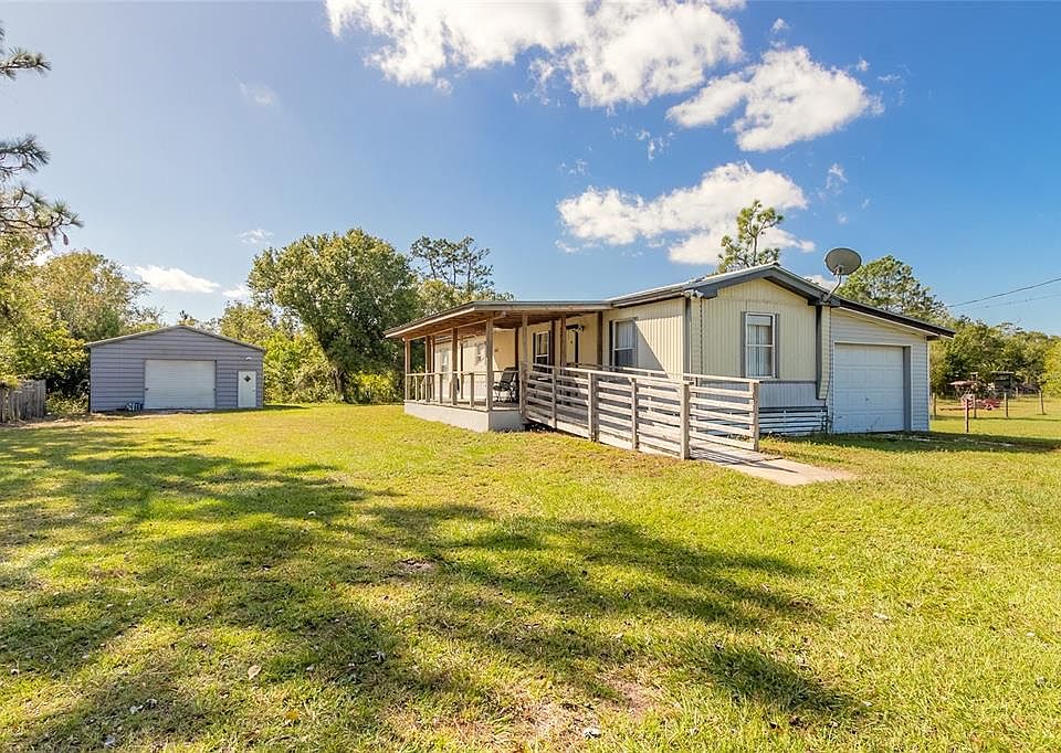 This 2BR 1BA mobile home (built in 1989) has a metal roof, newer laminate flooring in the kitchen and bath, newer kitchen cabinets, counter tops and new carpet in the bedrooms. New water heater There is an attached 12x42 garage with a roll up door and an additional 12x14 workshop connected to the home. Enjoy the 10x24 covered porch overlooking the large fenced yard. There is also a 24x36 metal building with full electric, concrete floor, tool room, large roll up door and a walk through door. All this is situated on .92 acre corner lot. NO HOA!!! Don't miss out on this property and all the possibilities. Schedule a showing today!!!