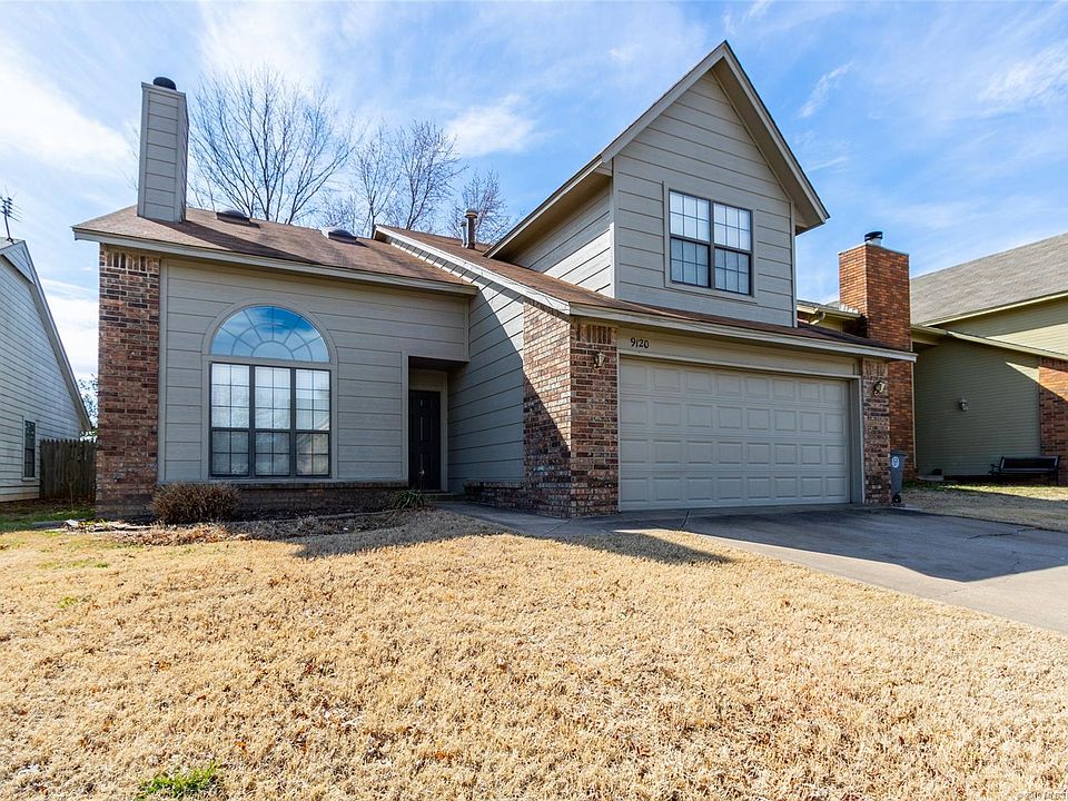 Flexible two-story home in convenient Shadow Ridge Estates. 4 Bedrooms carpeted, 2 Full Baths, 2 Car Garage. Enter Gorgeous wood laminate floors of Large Great Room w/20+ foot ceiling. Gas Log Brick Fireplace & Wood Mantel. Spiral staircase, upstairs landing. Formal Dining w/ Bay Window off New Granite Kitchen, refreshed ceiling, built-in spice Pantry. Large Game Room up w/closet, possible 5th bedroom. Master Downstairs, adjacent bath, spa tub. Florida sunroom w/2nd fireplace & ceramic tile. 2 Zones HVAC.
