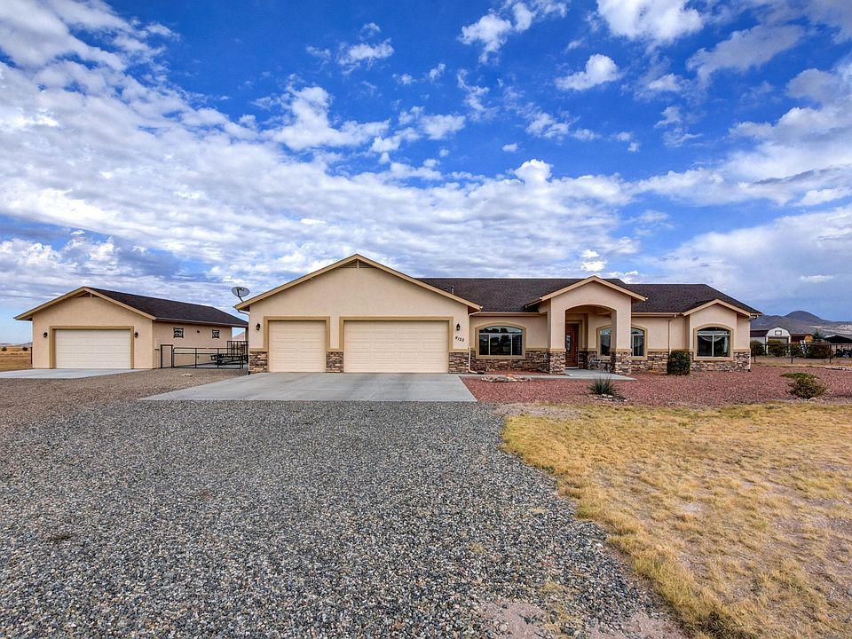 Fantastic single level home. We know you've been looking for a great home on acreage with a detached garage/workshop and here it is! 882 sf insulated garage with covered porch added just a year ago. The home is beautiful too - and so meticulously maintained! Four potential bedrooms and 2.5 baths in 2598 level square feet! Enjoy tile and engineered wood floors, granite countertops, island, and knotty alder cabinets in the kitchen. Formal + casual dining. Large living room has gas fireplace. Office or bedroom with 1/2 bath attached. Master is spacious with full master bath featuring his/her sinks and walk-in shower. Huge closet. Outside is a nice north facing patio to avoid SW wind, fenced backyard. 3 car+ detached. Owned Kinetico H2O softener. We almost forgot the VIEWS! Panoramic!