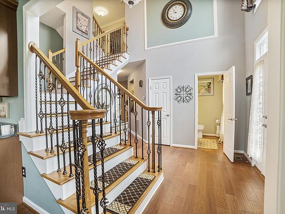 WELCOME HOME to MOORES MEADOWS IN PERRY HALL A SUPERB LOCATION AND COMMUNITY! This home is spectacular inside and out. Extraordinary brick front colonial with four luxurious finished levels. The home is truly a showpiece beyond expectations loaded with outstanding amenities and detailing. As you enter the two story foyer you are greeted with ample natural lighting, gleaming hardwood flooring and a magnificent combination of wood and wrought iron dual staircase. Just off the foyer to the left is a wine room that leads to the elegant formal dining room rich in distinctive detailing. To the right of the foyer the center hall leads you to the beautifully designed open floor plan featuring a coffered ceiling above the family room that is equipped with a stone covered gas fireplace. On the left an open air gourmet kitchen offers unparalleled space and a 19' x 10' morning room. The main level open floor plan finishes include Corinthian columns, two piece crown and chair rail moldings as well raised panel trimming. The main level also offers a professional home office setup with side entrance to the parking pad. The generously proportioned family room expands to the kitchen island and morning room accommodating for every social aspect of the day. The next level up offers three large bedrooms including the Master Ensuite. The two bedrooms each have double closets and plenty of room for large bedroom furniture sets. The Master Ensuite offers dual walk-in closets, tray ceilings with up-lighting and a relaxing stylish sitting room. Wash away the day in the generous walk-in shower or relax in the oversized soaking tub. The upper level one also includes a convenient laundry room with plenty of shelving space. Upper level two offers a large comfy fourth bedroom with full bath, second sitting room equipped with beverage cooler and wetbar. The finished lower level of the home offers a custom built bar with back bar cabinetry, commercial mug chiller, beverage cooler, refrigerator, table space area, double wide walk out stairs to rear yard as well a full bathroom with tub/shower. The open concept finished basement allows for plenty of entertaining space. This home is nothing short of amazing.~The garage is currently being utilized as an office but can become a fifth bedroom or converted back into a garage. A few more features include a rear yard 14' x 25' paver patio, multi zoned natural gas heat and heat pump, in ground irrigation system, central vac system and surround sound. Professionally landscaped... Shows like a Model !!!!!Schedule your appointment today.!~~
