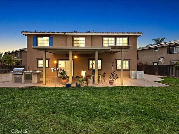 NEW PRICE IMPROVEMENT!!! ORANGECREST - Located in a quiet cul-de-sac in one of Riverside’s most desired neighborhoods, this home is adorned in natural light and has an easy-flowing floor plan of 3,186 sqft with 5 bedrooms and 3 bathrooms on a 9,583 sqft lot. The downstairs offers formal living and dining rooms, a downstairs bedroom and full bathroom, and an enormous family room with slider to the backyard, which adjoins an efficient kitchen with lots of working counter space, pantry and dining area. Upstairs features a spacious primary bedroom with an en suite primary bathroom with dual sinks, shower and soaking tub, and an enormous walk-in closet with substantial storage space. Three other well-proportioned bedrooms share a hall bathroom with dual sinks. Completing the upstairs is a large loft, perfect for an additional lounge area for a growing or multi-generational family, and the laundry room. Both front and rear yards provide peaceful settings with covered seating areas and appealing landscaping. A maintenance free patio cover and built-in BBQ island offer a perfect setting for entertaining. Other amenities include: high ceilings and ceiling fans throughout, fire sprinkler system, Vivint security system, 3-car attached garage, fully irrigated yards, pool-sized backyard, room for extra storage and more! This home is mere minutes from many amenities including shopping, schools, churches, and freeways. Super clean and ready for immediate move-in!