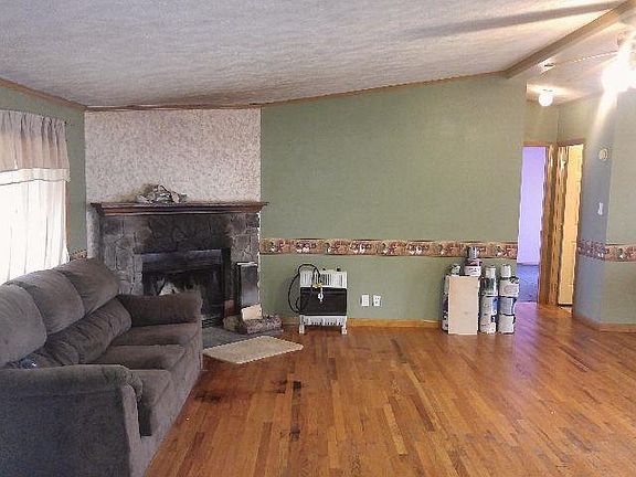Reduced and priced to sell!! This 3 bedroom 2 bath Manufactured home has hardwood floors, drywall- walls and vinyl windows all on a permanent concrete foundation. Spacious great room with cathedral ceiling, corner fireplace, separate dining room, master bedroom and bath with garden tub and shower, and large closets throughout is just some of what you will find on the inside. Outside consists of fenced in back yard, large deck, covered front porch, extra large pole barn and another outbuilding that could be converted to a garage if needed. Kitchen appliances as well as clothes washer included. Make the call!
