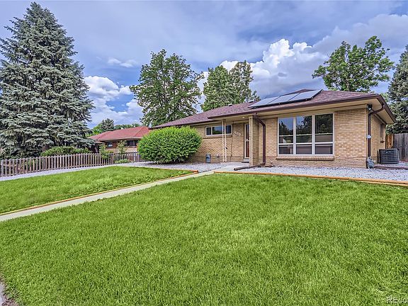 Discover this highly sought-after Meadowlark Hills location in the heart of Lakewood! This charming brick ranch home features classic mid-century modern chic design, gracious windows and it is situated on an incredible block with winding mature streets. The large yard adds immense character and style to this beautiful property. Inside, you'll find a charming floorplan with designer touches throughout- Lovely blend of vintage charm and modern updates. You will love taking in the natural light and embracing the indoor/outdoor feel of the floor to ceiling window family room centerpiece. The well-loved! Enjoy the many recent updates, such as custom paint, designer lighting and newer updated windows, highlighting the gorgeous gleaming real hardwood flooring. This spacious home offers 4 nicely sized bedrooms. The large cheerful kitchen features eating space, a gas stove, a lovely tiled floor and a skylight. Both of the baths have been stylishly remodeled. The fantastic finished basement includes a large recreation room, a bonus game/craft/office area and a private bedroom with egress window, and a private en-suite 3/4 bathroom. The basement has ample extra storage! Additional updates include -updated electrical panel, updated copper plumbing, air filter, sump pump & humidifier. The expansive, very private yard is perfect for entertaining. The abundance of natural mature space is ideal for gardening, relaxing, picnicking, playing, and hosting BBQs on your patio. Plus 2 great sheds for storage. You will love the installed Solar Panels! Save money and energy!