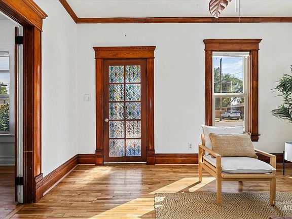 So much charm in this adorable West Boise home! The large corner lot allows for ample parking and includes a pull-through driveway and a secondary driveway. The covered front patio has big, bright windows and is perfect for enjoying a peaceful morning. Inside you'll be greeted by hardwood floors, original wood casings and tall ceilings with crown moulding! The kitchen features tile counters, stainless tile backsplash, newer microwave unit and the refrigerator is included. Recently renovated bathroom with tile shower, new vanity and new toilet. The cozy gas fireplace provides a wonderful ambiance and is also a great heat source for the home! Outside you'll find a thriving garden area in the fully fenced backyard. An oversized concrete patio on the East side of the home allows for a great space to relax on summer evenings. Other upgrades include new siding and water heater. The shed and washer/dryer are included. 132 sqft of storage space in the unfinished basement! Don't miss this great home!