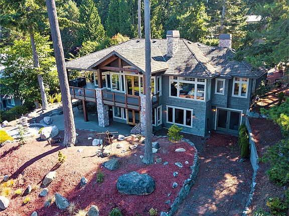 Elegant & exceptional, well-appointed Eide home with remarkable bay views & a long list of impressive features! Main level features a grand living rm w/reclaimed Douglas fir beams, formal dining rm, elegant chef's kitchen w/island & huge walk-in pantry, superb Master suite & more! Enjoy sunsets from your heated deck! Lower level has diamond cut concrete floors w/radiant floor heat, 500-bottle wine rm, deluxe wetbar, 8-seat theater, & shop/rec rm! If you demand the best, this is the home for you!