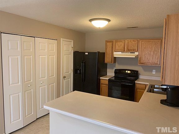 Gorgeous vaulted living room with gas log fireplace! Open kitchen concept with dining area. Featuring sleek black appliances! Two bedrooms with full bath on first floor and private master on second floor with walk-in closet. Deck in back perfect for Summer and fenced in yard. Minutes to RTP/RDU/540 and shopping, Great Location. Home is ready for immediate move so Hurry!