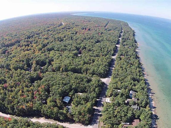 A paved driveway leads to this completely custom built home on 114' of Lake Huron beach. The home features 3 bedrooms, 2 full baths & 2 half baths. Upon entering the 8' custom wooden door, you see the Straits of Mackinac through the 18' vaulted ceiling. Relax outside on the terrace with the built in grill and custom stone work. This home is priced less than half the construction cost. It is completely custom throughout with nothing spared in the built ins. It has a whole house generator and a 3+ car garage. Also with this home are 3 lots across the road that are included.