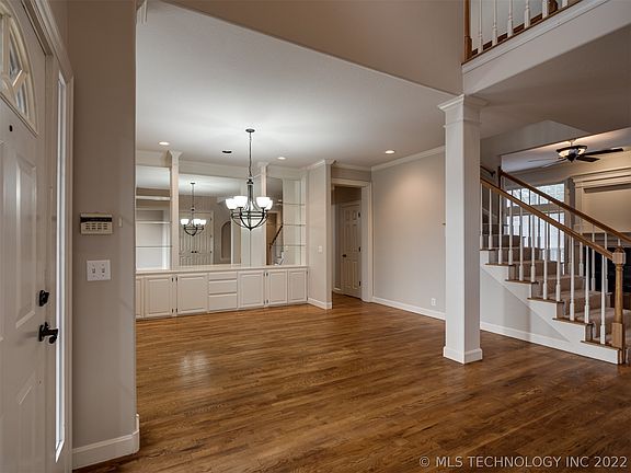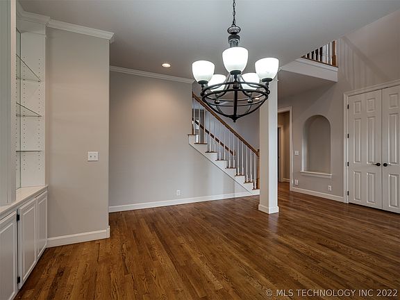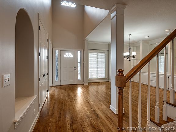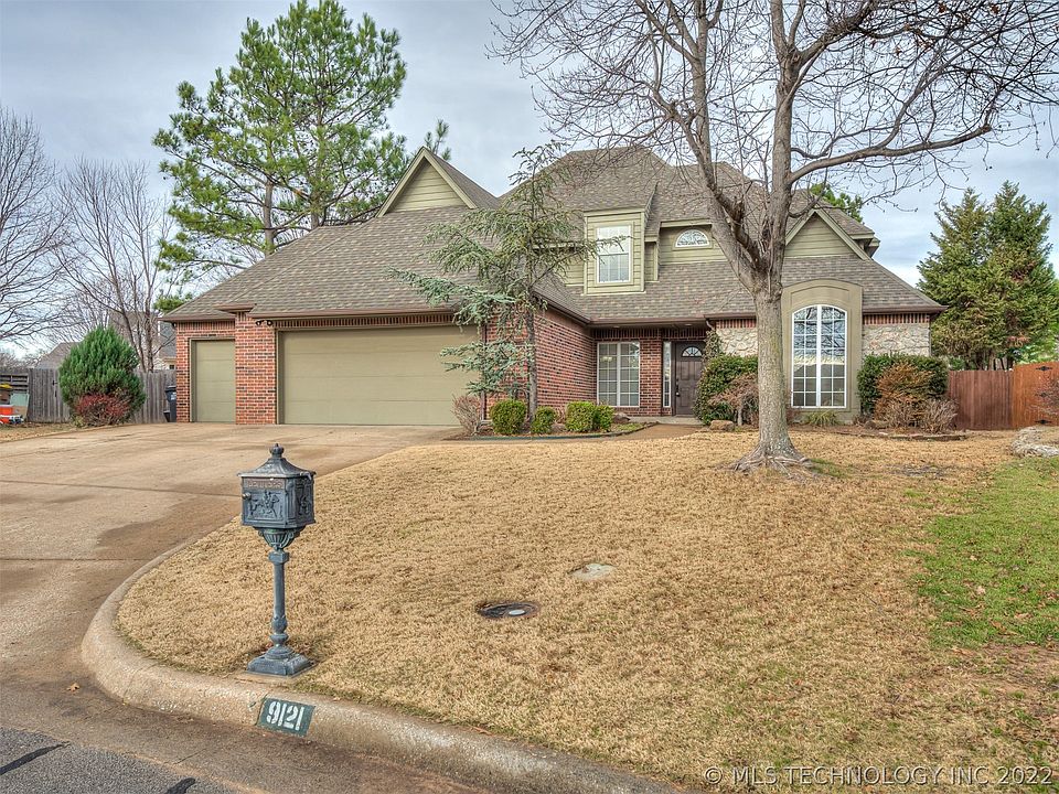 This beautiful home is all about location! With convenient access to the Creek Turnpike & Highway 169, this stone and brick home sits on a private, pie-shaped .34-acre cul-de-sac lot in the center of Stone Creek Park neighborhood. The backyard features two pergolas and is perfect for hosting large gatherings. Indoors, you’ll find a spacious great room, kitchen with granite countertops & nook, formal dining, powder bath and dedicated study/office—all with lovely soaring ceilings and hardwoods throughout. Also on the main floor are the master bedroom and spacious master bath with a walk-in shower, whirlpool tub & dual vanities. Three bedrooms, large game room and hall bath upstairs, with attic storage. Seller improvements include: new upstairs heat & air replaced 2020, downstairs heat & air replaced 2018, fresh paint throughout 2022, trees treated & trimmed 2021, new Kohler toilets. Bixby School Districts.