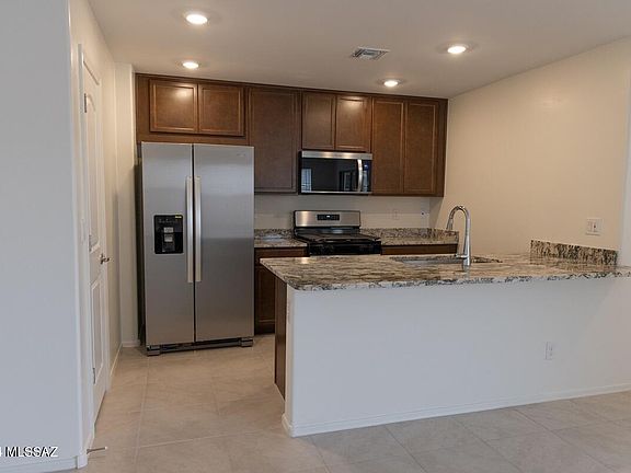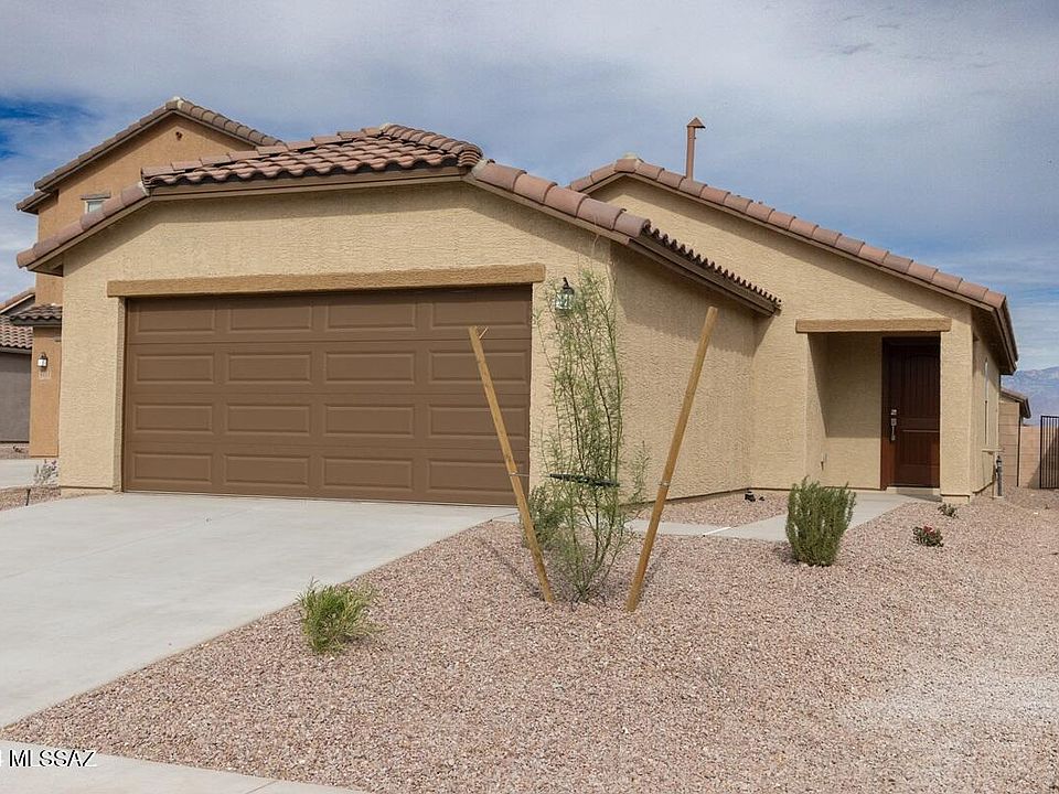Set on quiet cul-de-sac, this single-story home features an open floor plan and upgraded ceramic tile flooring throughout. Cook and food prep in the modern kitchen, which showcases birch cabinets, an island, pantry, and Whirlpool(r) stainless steel appliances. The primary suite features a walk-in closet and connected bath with a shower and extended dual-sink vanity. Unwind and entertain on the covered back patio. Homeowners can enjoy access to community park, dog park, and adjacent Tucson Loop. Price includes discount predicated on using seller's preferred lender KBHS. Eligible for up to $10k towards rate buy down or closing costs. Must use seller's preferred lender KBHS for financing. Projected closing month is December 2024. Property taxes are not available to date.