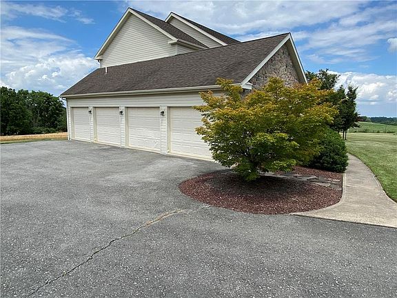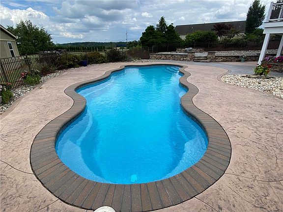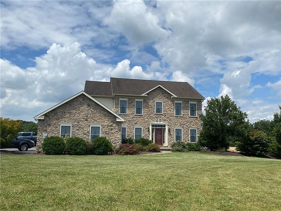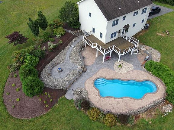 Would you like to escape the hustle and bustle but be close enough to the necessities? This 4 bedrm 2 & 1/2 bath country home located just 2 miles north of Lehigh Valley's Route I-78 may be the escape you've been waiting for. A long paved drive leads to the side entry oversized 3 car garage with 4 overhead doors. The front of the home is faced with stone which creates a beautiful appearance. To the rear you will find an inviting in-ground pool with ample seating on a large patterned concrete area with separate raised area featuring a built in stone gas fire pit with seating for those chilly evenings with friends. The pool can be accessed either from the walk out basement or from the 1st floor living room via the wrap around Brazillian hardwood deck. Interior features include: gleaming hardwood floors, dbl foyer closets, open concept kitchen w/center island & pantry, storage room, 2nd floor laundry with cabinets, 3 zone gas heat, basement is framed, wired and ready for drywall. views!