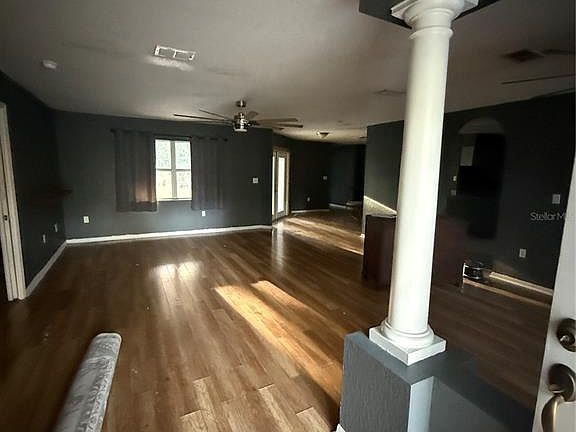 Discover the chance to enjoy the peaceful Country Life on 1.16 acres of quiet, tranquil land. The property is completely fenced with a chain link front and a privacy fence surrounding the entire back, offering a cozy and secure environment. Conveniently located close to everything, with easy access to Tampa, and just a short drive west to Brooksville and Spring Hill, or east to Clermont and Orlando. The famous Flea Market is only minutes away! There's even the possibility to rezone this property to agricultural, which is a fantastic bonus. This charming home, built in 2005, is ready for your personal touch. You can choose your own colors, appliances, and flooring to make it truly yours. It boasts 3 bedrooms, 2 bathrooms, and a versatile den that could serve as a home office or an extra bedroom. The oversized 3-car garage includes a 220 hookup, perfect for hobbies or additional storage. Offering just under 2000 sq ft, the home features a thoughtful split floor plan, providing privacy in the primary suite with a large en suite bathroom and his & hers walk-in closets. All bedrooms have spacious walk-in closets, and the home features 36-inch pocket doors throughout. The kitchen is spacious with an eat-in bar, plenty of counter space for holiday baking, and cabinets for ample storage. It connects to a generous laundry room with a laundry tub. Energy-efficient upgrades include a solar system for the 80-gallon water heater, attic fan, double-pane tinted windows, a new drain field in 2020, and an A/C system installed in 2014 with handler fan. The circular driveway offers plenty of parking space for vehicles, boats, RVs, and toys. This property truly has the potential to become your dream home—customized to your liking. Call today to schedule a showing! All measurements are approximate.