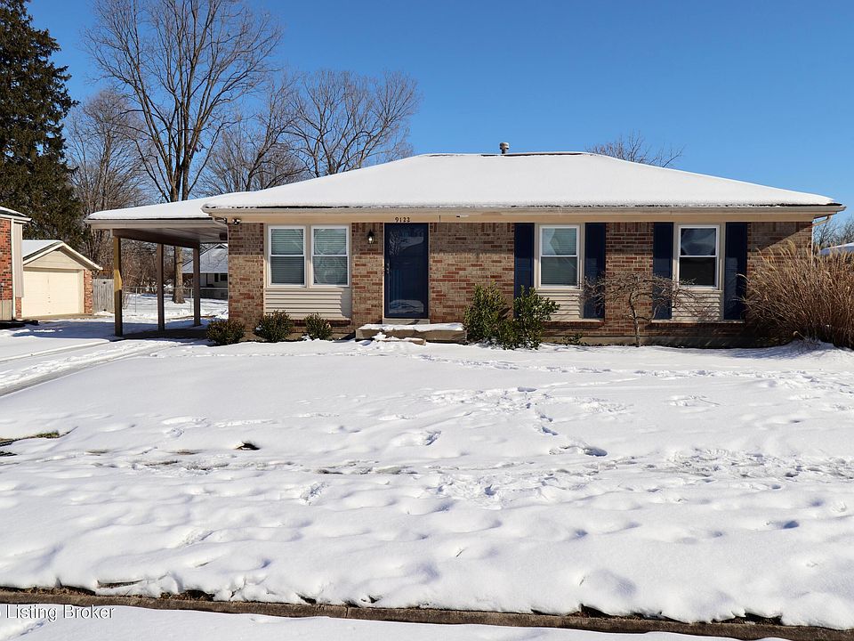 Welcome to 9122 Brandywyne. Don't let this gem of a home slip through your fingers. In the sought after subdivision of Brandywyne, you will find this all brick,3 bedroom, 1 and 1/2 bath ranch home with an unfinished basement and a carport to boot, all for under $245,000. Upon entering your new home, you and your guest will be welcomed with well taken care of hardwood floors in the living room, hallway, and all bedrooms. With over 1300 sq. ft. to spread out and an extra nice sized family room, you are going to enjoy entertaining your guest. If you need even more room, come on down to the unfinished basement where you can let your imagination run wild with so many options an open space. The outside space is a great place to relax. You can sit on your covered carport and watch the world go by, or have your Coffee in the morning, and grill your favorite dinner on your patio outback. Some wonderful bonuses that the sellers have done since they bought it was upgrade the HVAC system, the inside electric panel, and brand new, top-of-the-line, exterior doors. Listing agent is related to the sellers. Just FYI, a fisheye lens was used when taking pictures to capture a better full view of the rooms and property.