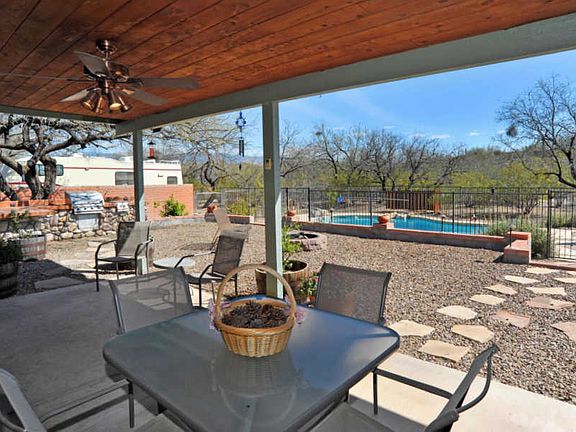 Gourmet kitchen w/maple cabinetry, 5 burner gas stove,microwave, double oven, wine chiller,granite countertops w/travertine backsplash,R/O water filtration system.dining area offers amazing Mountain & Sunset Views. Family room features wood fireplace w/custom brick surround,recessed lighting & glass sliding doors leading to patio. Den has double french doors. Master BA offers walk-in closet,vanity w/travertine countertops, updated fixtures, skylight & walk-in in shower w/tile surround. Hall bath offers shower tub combo w/door. Laundry room w/upper cabinetry. Backyard oasis has extensive landscape lighting, built-in Gas Grill & fire pit,incredible pool,over an acre, RV parking, Horse property, bring your toys,no HOA. No popcorn, incredible remodeled home with a great lot, close to shopping.