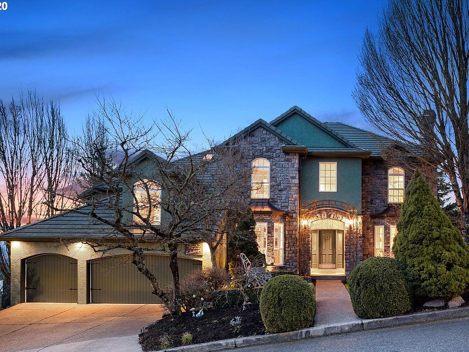 An amazing French Country Estate with 180 degree views. Sunsets & Romance nestled in beautiful garden grounds. A perfect setting for a Cinderella wedding. A rare view home with a level back yard. This beautiful home was "L Auberge" in the l996 Street of Dreams. Home has many upgrades, and remodeled throughout. Fabulous for entertaining inside or out. Beautiful, professional landscape garden grounds as back drop.