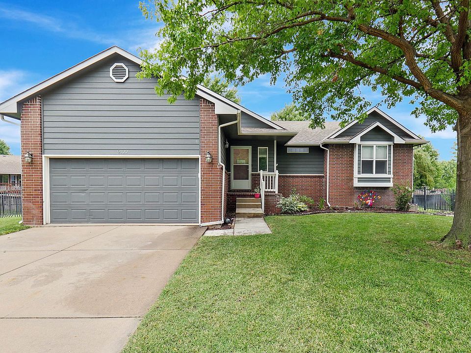 3 bedroom, 3 bathroom ranch home located in Bradford located in Maize schools. 3 bedrooms on the main floor, 2 updated bathrooms. Lower level has a large family room with a fireplace and view out windows. Bedroom in basement is partially finished. Home sits on a large fenced lot with irrigation well, sprinklers and shed, mature trees and a large deck.