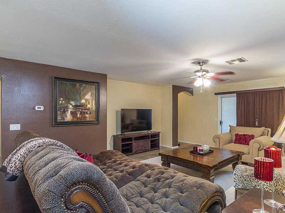 You'll love this charming home offering 4 bedrooms & 2 baths in 1712 SqFt, making it a great starter home or investment property! Great room floor plan & split bedrooms. The eat-in kitchen has tile floors, oak cabinetry, pantry & tons of counter space. Sliding doors lead out from the great room to the covered patio & low maintenance backyard. The master bedroom has a bay window & a private bath with separate tub & shower & walk-in closet. Other features include a 2 car garage, ceiling fans in all 4 bedrooms, laundry room, natural light throughout & much more! See today!