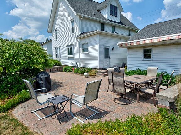 Priced under appraised value. Sparkling diamond to be treasured and you must come inside to believe. Perfectly updated while showcasing original scrolling custom woodwork and large 10 inch baseboard, trim and moldings and extra wide staircase. This 5 bedroom 3 full bath home merges new with the old. Solid built 1915 with hardwood flooring on first and second floor. Second floor is carpeted. Thermo windows, large Bay in Living room, Granite kitchen with Newer appliances and Merillat Cabinets. Reverse Osmosis Water, New foundation 1993, Insulated, Bilco door. Enclosed 27'x9' Porch with placement windows. Outside features; wonderful perennial gardens where you can enjoy raspberries, blueberries and asparagus, a nicely landscaped patio, vinyl siding, roof done 2013, covered porch, 2 car garage garage and 2 driveways, backing to open green field with pastoral views., Rec Room: Space
