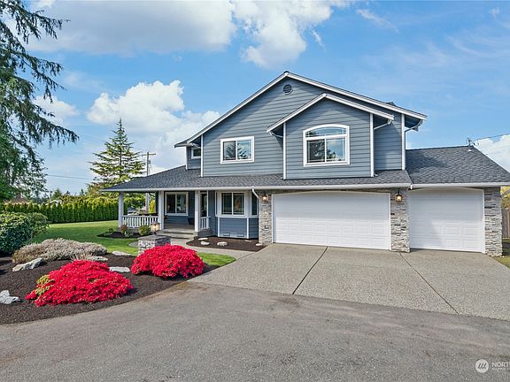 This stunning property boasts breathtaking sound, mountain, and territorial views. Level lot is perfect for entertaining surrounded with mature landscaping. The home has received updates throughout, including hardwood flooring, a remodeled chef's kitchen, a remodeled primary suite and bathroom, new appliances, solar panels, stamped concrete patio, and more. The main floor consists of a living room, dining room, den/bedroom, 1/2 bath, family room, and kitchen. Upstairs, you'll find 4 bedrooms, laundry, and 2 bathrooms. There is ample parking available with a 3-car garage and RV parking. Award winning Mukilteo Schools, and quick access to I-5 and 405.