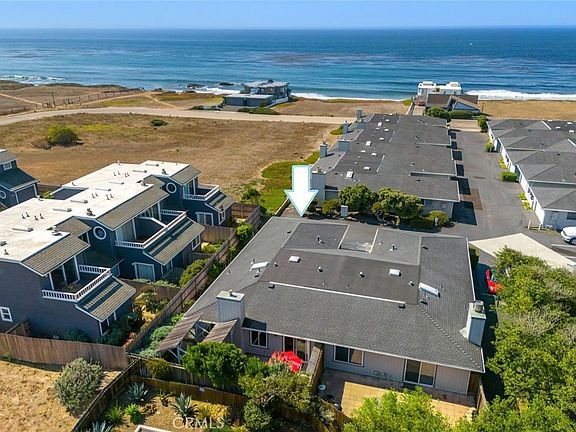 Relish a laid-back coastal lifestyle west of the iconic Pacific Coast Highway with unique features exclusive to this renovated San Simeon condo within the Seagate Court complex! Past a picket-fenced brick courtyard, enter the 2-bedroom, 2-bath end unit to discover a sunlit, open-concept interior showcasing marine-inspired stained glass accents and gorgeous wide-plank flooring. Quiet and secure, the living room windows face your own private gated green space. Dimmable recessed lights enhance the mood in the dining corner as you prepare meals in the adjacent kitchen with its custom cabinetry, stainless steel appliances, gleaming countertops, and multi-seater peninsula. Wake up refreshed within the carpeted bedrooms, including the primary retreat with a walk-in closet and convenient ensuite. A large skylight illuminates the shared bath catering to guests. Unwind with nightcaps in the secluded backyard by the hot tub and covered bar top, enclosed by landscaped concrete planters. Enjoy an oversized, attached 2-car garage that sports breathtaking ocean views. With the beach, shops, restaurants, Cambria, Hearst Castle, and San Simeon Bay easily accessible, why wait? Experience it firsthand with a tour today!