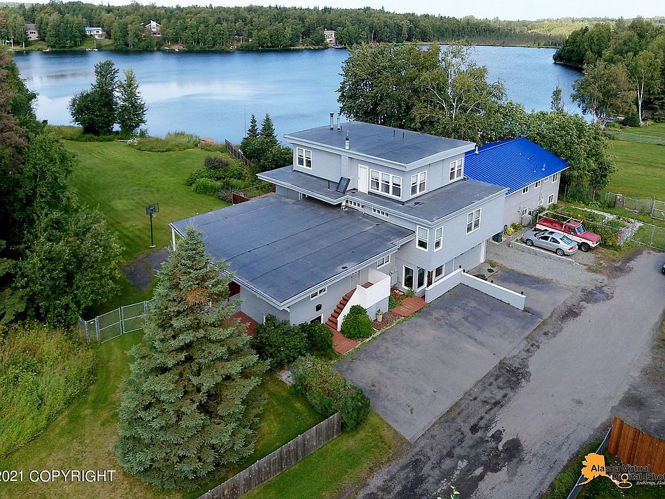 Rare 1/2 acre lakefront property w/ private dock & southwest exposure. Unique floor plan takes advantage of sunny lake views. West decks w/cable railing, stunning living room & entire top floor dedicated to the master suite. Duplex floor plan w/private entrance. Property includes the neighboring lot. Priced $156,200 below tax assessments. Two additional lakefront lots are available for sale.Walkout basement could possibly be finished as a 3rd unit. Currently sheetrocked with washer and dryer but lacks a bathroom or kitchen. The main house features wood floors, updated kitchen with stainless appliances. Beautiful cedar ceiling in the large family room. Two fireplaces in the main house, one in the apartment. Fenced and landscaped with multiple decks.