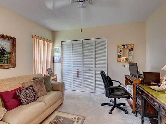 This lovely villa is located in the highly desirable River Oaks in Boca Raton, FL. There is a screened outdoor entry and welcoming foyer inside. Light tile in main living areas. There is a vaulted ceiling in the living room. It also is very light and bright and features a sliding glass doorto a large screened t patio overlooking the canal. Dining Room has a custom mirror and a sliding glass door entry to a screened, tiled patio. The kitchen has great cabinet space and a small breakfast bar and also has sliding glass doors to a screened patio. All bedrooms have light beige carpeting. The master bedroom is very spacious and has a large walk in outfitted closet. Master Bath features a double sink and walk in shower. There is also a screened door leading to a large tiled in screened patio.