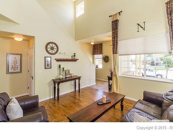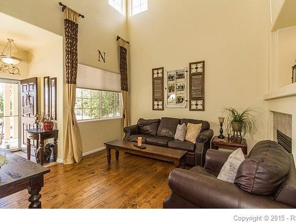 This 2-story home offers country club living w/ comfort, convenience & modern updates. Nestled away in the lovely Woodmen Hills neighborhood. Mature trees & xeriscape landscaping, offer privacy and low maintenance. Walking distance to Woodmen Hills Rec center, easy access to shopping, entertainment, & main roads! Covered entry opens to large foyer w/18âtile floor & closet. The main level great room boasts cathedral ceilings & hardwood floors that flow throughout the main level. Large windows let the natural light pour in