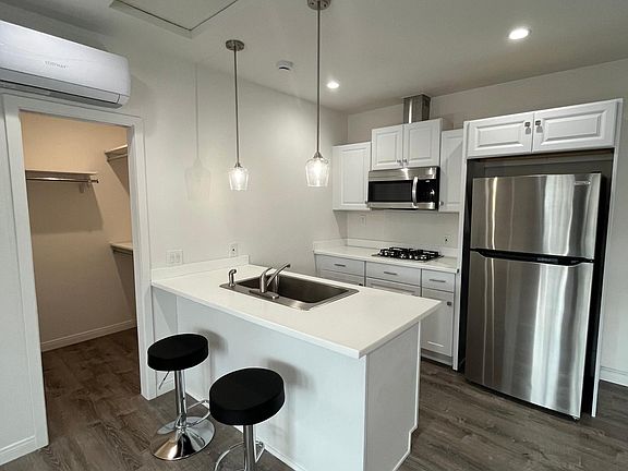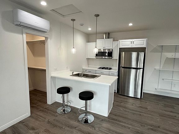 New 450 square foot garage conversion ADU. This studio includes a separate entrance, full bathroom, kitchen, AC/heat, and a walk in closet. Shares a (soundproofed) wall with the main house. New washer/dryer is shared with the main house tenants through a laundry room with its own entrance. Located on a quiet, safe residential neighborhood in Mira Mesa, a very central location. This studio comfortably fits one person. One year lease. $1900/month. Mira Mesa is close to several hospitals: Scripps Green Hospital, Palomar Medical Center Poway, Kaiser, Sharp, UC San Diego Medical Center. Center for Hi-Tech, Bio-Tech. Not far from from Sorrento Valley where there are iGentBio, Mesa Biotech, Avidomics, Samsara Sciences, Dexcom, and Qualcomm. Also not far from UCSD. Close to I-15, I-805, I-5. Close to many shops and restaurants (amazing Asian food in particular!), the cinema, and close to canyon trails for hiking and biking. No pets, no drugs, no smoking. Please fill out an application and/or send me a message and tell me about yourself and why you are a great candidate to live in the studio before requesting a private tour. I will need proof of income, a credit report, and clean background check (all within the last 3 months) to secure your year lease. Thank you! First + Last month's rent due at signing. Utilities are a flat fee of $175 a month. One driveway parking space included. One year lease.