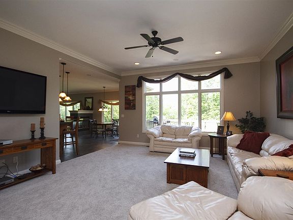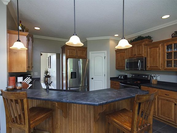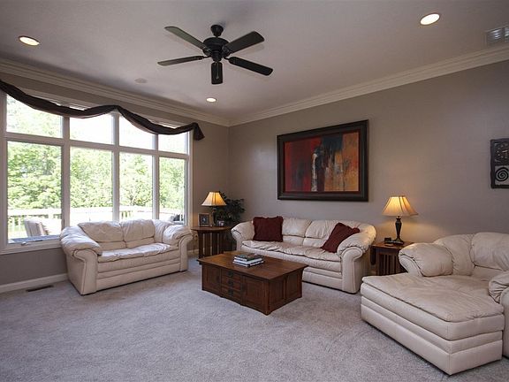 4200+ SQ FT RANCH ON A FULL FINISHED DAYLIGHT BASEMENT, 4 BEDROOMS 3 FULL AND 1/2 BATH. SPLIT BEDROOM FLOOR PLAN. GREAT ROOM WITH FANTASTIC VIEW OF THE LARGE YARD AND WOOD LINE. KITCHEN HAS BREAKFAST BAR, STAINLESS STEAL APPLIANCES, RAISED PANEL CABINETS, 24 IN TILE FLOOR, OPEN TO NOOK AND HEARTH ROOM WITH 2 WAY GAS LOG FIREPLACE. SPACIOUS MASTER SUITE WITH DOUBLE TREY CEILING AND FRENCH DOORS. MASTER BATH WITH HIS AND HER SINKS, SHOWER ,JACUZZI AND WALK IN CLOSET. FABULOUS LOWER LEVEL WITH 4TH BEDROOM, FAMILY ROOM, REC ROOM, OFFICE AND WORK OUT ROOM. BASEMENT IS PLUMBED FOR WET BAR, ALL NEW CARPET IN UPPER LEVEL 2015, ALL NEW KITCHEN APPLIANCES IN 2015, NEW WASHER AND DRYER IN 2014, FRESH PAINT THROUGH OUT, SURROUND SOUND THROUGH OUT. SECURITY SYSTEM, WATER FLOW SUMP PUMP, POOL TABLE STAYS WITH HOME! STAMPED CONCRETE PATIO WITH FIRE PIT AND 14 X 12 RAISED DECK. 3 CAR GARAGE.