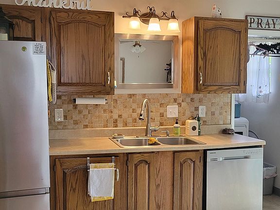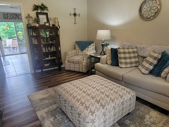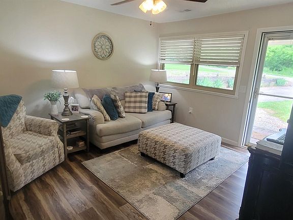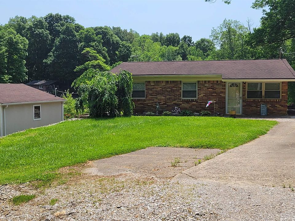 3 Bedroom brick home with detached garage on very peaceful lake front setting. You will enjoy the 36x16 deck that is accessible from the main bedroom or kitchen. Perfect spot for star gazing! Kitchen includes all stainless appliances. LVT flooring in living room hall and bathroom. Bedrooms are carpeted. The kitchen and laundry area flooring is ceramic tile. Custom blinds throughout. Tankless water heater less than 5 years old. Newly installed Furnace and A/C. The Washer, Dryer and Refrigerator are less than 3 years old. Bathroom was updated fall of 2020. Roof is approximately 12 years old. Convenient attached carport and a detached 2 car garage with lean-to provide plenty of parking. There is a fire pit with concrete benches to enjoy roasting marshmallows and hanging out. Also a small garden area for fresh vegetables and herbs. .88 ACRES