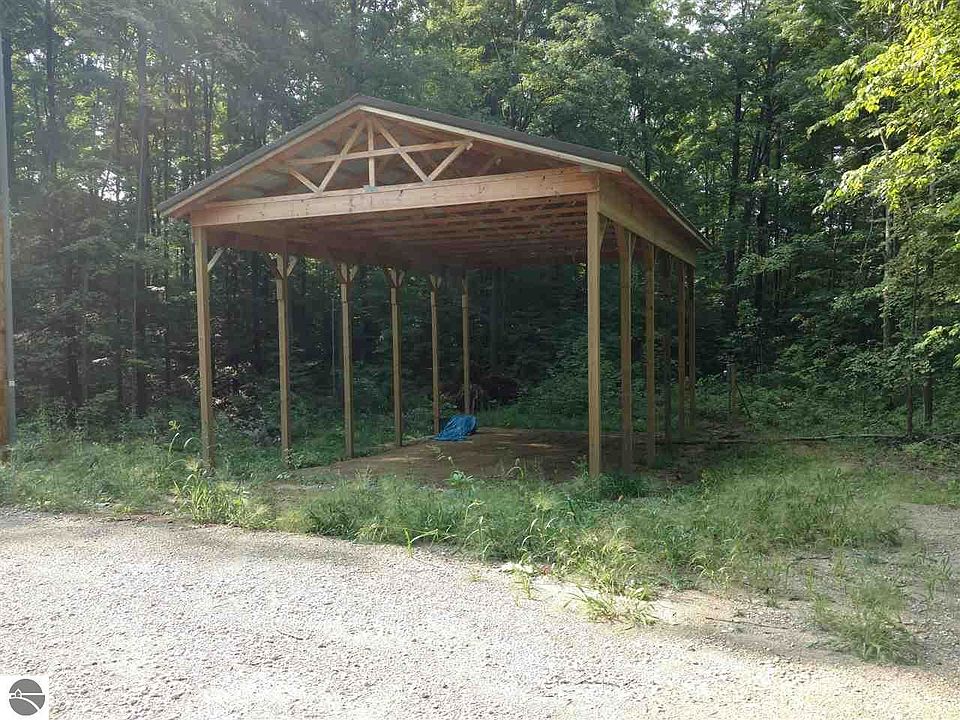 Just 2 miles south of downtown Kingsley. This private 10 acre parcel already has a covered parking pad with electric all ready for your camper/fifth wheel and a storage shed for your toys. Use it as is as a vacation retreat for your camper/fifth wheel and/or build your dream home on the cleared building site which is set among a mature hardwood forest. . Must see to appreciate. Peaceful area, county maintained road. Close to school, post office and bank. This is a great opportunity to live/vacation in the country but still within an easy drive to Traverse City!