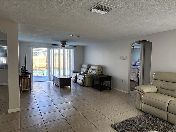 Pool Home! Move in Ready! Beautifull and Large 3-bedroom 2-bathroom, single-family home with a great layout with over 2110 square feet of living area with a large car garage with washer and dryer included and its hookups. Two living rooms, two dining rooms, one walking closet located in the master bedroom, a metal gated entry with a portal with private view with some palms on the entry way and cemented driveway for car parking's at front. Home features a kitchen with an island, stainless steel appliances and a pantry. Tile flooring throughout the kitchen, the two living areas, the two dining rooms, bathroom closed to the kitchen, and vinyl plank flooring in all three bedrooms. The pool has a new pump, is screened, enclosed and is very well maintained with lights to enhance its beauty at nights. Roof, HVAC system, electric box, water heater, plumbing, is all in great working conditions with no issues and property is now completely fenced! New garage door and new garage opener. No flood zone, No HOA, located in Port Richey Florida, close to US 19, short drive to Cities like Tampa, Clearwater, St Petersburg, and Orlando.