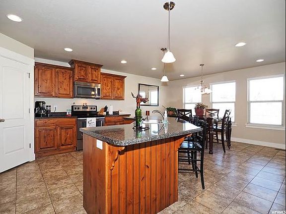 IMMACULATE HOME! So clean that you can eat of the floor! This wonderful layout has unbelievable pride of ownership. You will love the comfort of the craftsman style base & case, & vaulted ceilings throughout! Your new home boasts a huge kitchen with large center island, open concept floor plan, large ceramic tile flooring, rich knotty alder cabinetry, stainless steel appliances, main floor laundry & it even has a top of the line water softener, ceiling fans & can lights throughout. It also features 2 tone paint, wrought iron stair rail, professional landscaping, a fully fenced yard, and tons of storage space. You will not find a nicer cleaner home for this price in Eagle Mountain! Don't let this one slip away