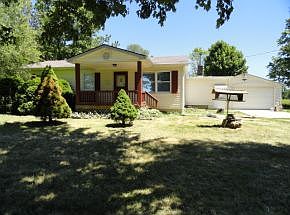 Rural setting on 2 acres in between farm fields is where you will find this 3 bedroom, 2 bath, 1402 sq. ft. ranch home. Home offers large Kitchen with lots of cabinets, bar counter with bar stools, and dining area. Plus living room offers large bri ck fireplace for extra heat and sliding door out to back deck. Updates include some new paint and flooring thru part of the home. Outback is a 12x28 deck with a 12x16 gazebo off to west side. 2 outbuildings consist of a 10x12 that was used as a ch icken coop and a newer 14x16 that has some electric, windows and some insulation. Sit out back and enjoy the scenery or out front on the 8x12 covered front porch and watch the traffic go by.