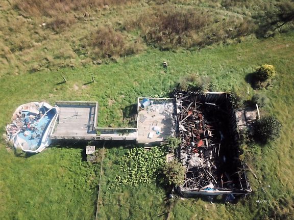 Here is an interesting one. 6 Acres. Former residence has burned down leaving a developable site. There is a water tap, electric, poured foundation and septic; so many of the more expensive elements of building are already in place! Potential purchasers should have the septic and foundation evaluated to determine if they are serviceable for use.