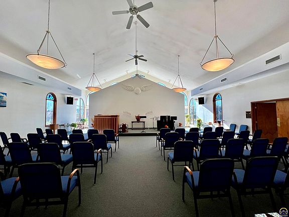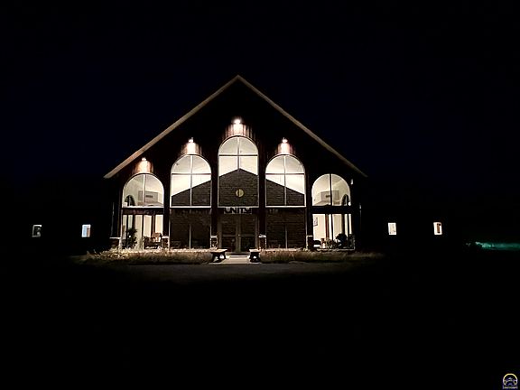 This picturesque property spans 7 serene acres, situated atop a hill just three miles from the city, offering tranquility with convenient access. A paved road leads to the 5,025 sq. ft. building, designed to host a variety of events or functions. At its heart is a spacious sanctuary, perfect for worship services, ceremonies, or large gatherings. Adjacent is a generous fellowship hall, ideal for receptions, banquets, or community meetings. The property also includes multiple classrooms, suitable for education, training, or breakout sessions, as well as a large, fully-equipped kitchen to accommodate catering needs. Facilities include a men’s restroom with two stalls and a women’s restroom with three stalls, ensuring ample amenities for guests. A large office, complete with a half-bath, doubles as a Bride’s Room or preparation space for events. This versatile property is not only perfect for use as a church but also as an event venue, church retreat center, or corporate retreat space. The expansive outdoor space could accommodate additional activities or events, offering stunning views and a peaceful environment for reflection or celebration. The unique combination of a hilltop location, flexible facilities, and natural beauty makes this property a rare gem with boundless potential.
