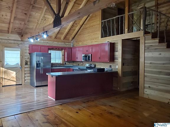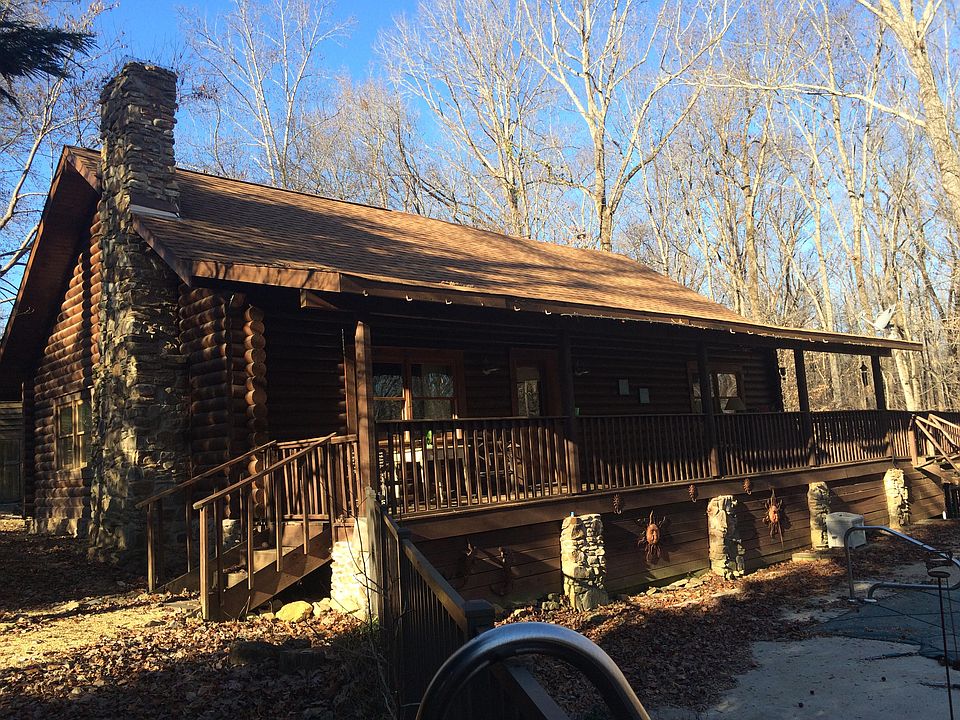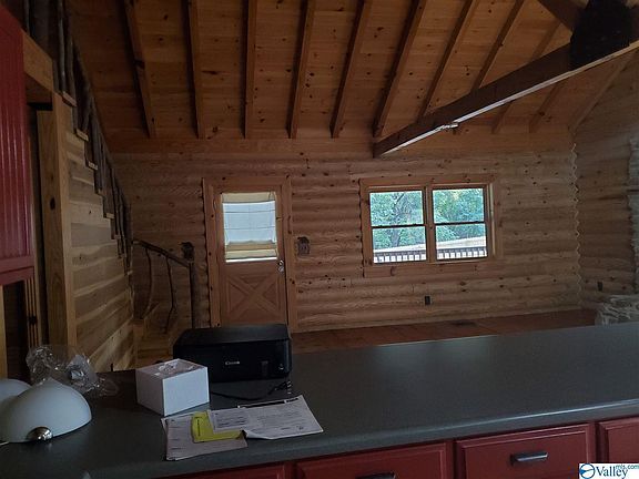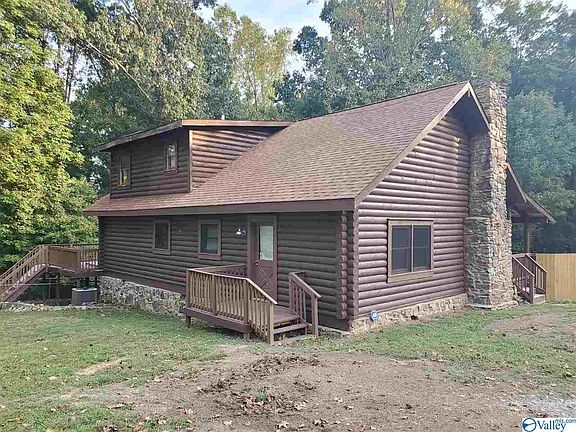 Foreclosure sold as is where is. Log house with wrap around porch in beautiful country setting. French doors from den and down stairs bedroom onto the covered porch. Two story unfinished guest house with living area and kitchen downstairs and sleeping and bathroom upstairs.