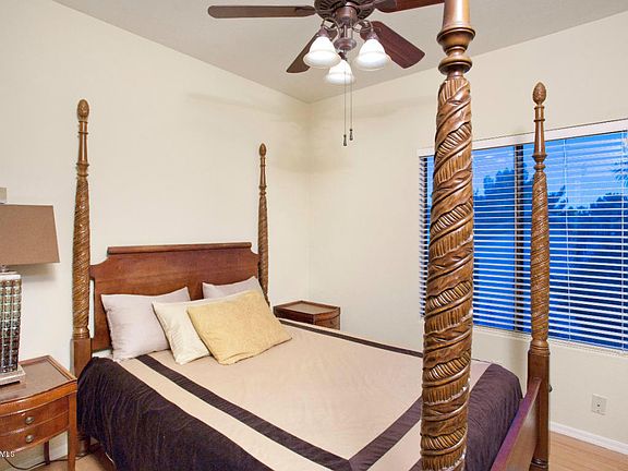 Inviting entry welcomes you to this charming tastefully upgraded and remodeled 4 bedroom, 2.5 bath home. Vaulted ceilings and sky light. Quality upgraded features include flooring in the living room, dining room, staircase, hallway, and all bathrooms. Luxurious master bath with granite countertops in addition to new lighting, and faucets also in guest bath. Granite countertops, new appliances, wine cooler, and all light fixtures in the kitchen as well as an added island. Family room with nice stone/brick fireplace overlooking lovely sparking pool. Freshly painted. Cozy, relaxing, and shaded newly tiled covered patio, large pool. Perfect location, convenient to schools, shopping, and 101, a MUST SEE.