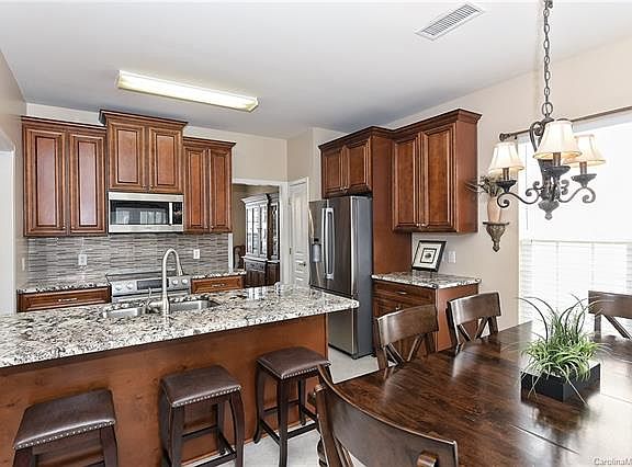 Heart of Blakeney...Ashton Grove! Minutes from Ballantyne, Stonecrest, and Waverly. This beautiful brick/vinyl home includes 3 bedrooms and 3 full baths. Updated kitchen has granite countertops, tile backsplash and matching stainless steel Bosch appliances. Open living room with vaulted ceiling and gas fireplace boast an abundance of natural light. Spacious Master Suite located on main features tray ceiling, bath with dual vanities and walk-in closet. Secondary bedroom with full bath also on main. Upper level features large third bedroom with private bath and loft which accommodates bonus/media room and/or office space. Home resides on one of neighborhood's larger lots. Enclosed sunroom, gracious patio space and flat yard...perfect for entertaining family and friends. Lawn maintenance included in quarterly HOA fees. 2-Car Garage. Home well maintained and move-in ready!