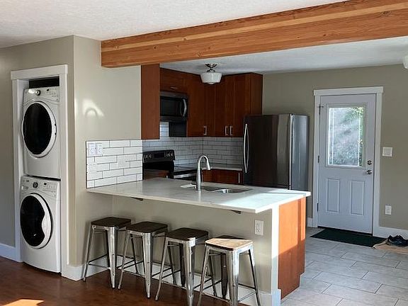 This 3 bed, 2 bath fully remodeled home with open floor plan and lots of natural light. Fully remodeled kitchen with new appliances. Washer/Dryer in unit. This double lot provides a huge backyard for hanging out with friends, gardening, or a great space for your kids to play. It has a large driveway and 1.5 car garage to park your car and still has plenty of room for gear and tool storage. It is right down the street from Pier Park, walkable to Downtown St. Johns, Cathedral Park, and Forest Park. The bus route is a street over and right on or near multiple bike routes, making it an ideal location to not have to rely on your car. This is such a great place to make a home, is in a wonderful neighborhood with awesome neighbors. *We would consider 1 well-behaved dog upon meeting and/or reference and an additional pet deposit. * No smoking allowed in the house or garage. Tenant to be responsible for all utilities and yard care. Owner to pay for trash and complete regular maintenance.