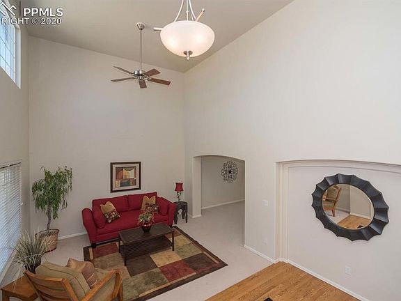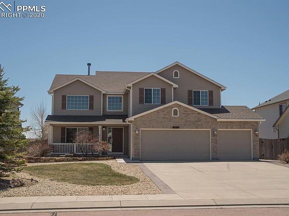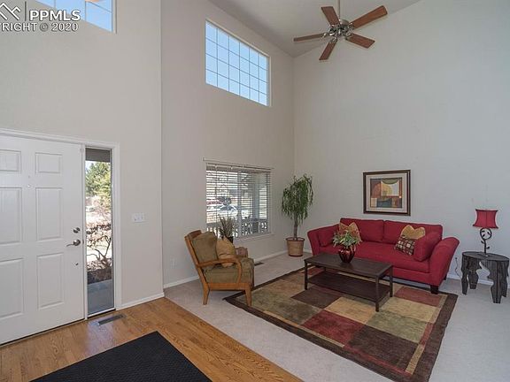 COME HOME TO THIS STUNNING PROPERTY LOCATED ON A .23 ACRE LOT, OFFERING SUPERB CURB APPEAL w/ COVERED FRONT PORCH, DRAMATIC LIGHT, BRIGHT ENTRY, 20' CEILINGS IN LIVING & FAMILY ROOMS, LARGE FORMAL DINING ROOM W/COFFERED CEILING, SPACIOUS KITCHEN W/HARDWOODS, ISLAND, DOUBLE OVENS, DESK AREA, EAT-IN NOOK, WALK-IN PANTRY, COUNTER BAR & STAINLESS APPLIANCES, LARGE FAMILY ROOM W/FIREPLACE, BAY WINDOW, HUGE MASTER SUITE W/FRENCH DOORS AND 5-PIECE BATH, LARGE LOFT/OFFICE/DEN/PLAY AREA, MAIN BEDROOM W/FRENCH DOORS CURRENTLY USED AS OFFICE, SEPARATE LAUNDRY ROOM W/WINDOW OFF GARAGE & DOUBLE HALL CLOSET, ENORMOUS, STAMPED CONCRETE PATIO IN BEAUTIFULLY LANDSCAPED REAR YARD OFFERING MOUNTAIN VIEWS, ACROSS THE STREET FROM ANTLER CREEK GOLF COURSE, NEAR HIKING TRAILS, BACKS TO GREEN SPACE, ACCESS TO TWO REC CENTERS W/POOLS, NEAR SCHOOLS, 2 MINUTES TO SHOPPING, EASY DRIVE TO PETERSON AND SCHRIEVER, 15 MINUTES TO COLORADO SPRINGS!