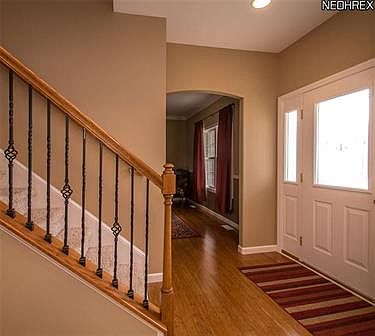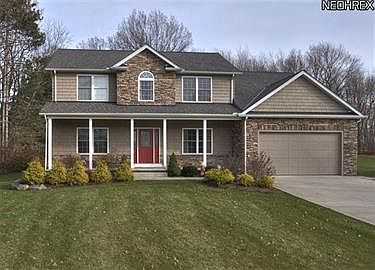 This custom built home offers an attractive stone and vinyl shake front and sits on an acre lot. The 4 bedroom, 2.5 bath home offers 9ft ceilings on the first floor. The open family room to the kitchen is great for entertaining. The kitchen has tiled floors granite counters, stainless appliances and a walk-in pantry. The mud room has a large coat closet and leads you to the laundry rm, with laundry tub, storage closet and cupboards. There is a first floor den. The master suite offers vaulted ceilings with a stone gas fireplace, dual closets and a spa like bath with heated porcelain floors. Gorgeous colors thruout, full basement plumbed for bath. Deck off the back. Beautiful home on great wooded lot.