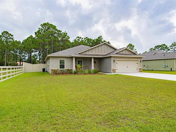This gorgeous perfectly maintained home is built in 2018 by Ramsey & Walker with full attention to detail. Upon entering, you'll note the open spacious floor plan, wonderful neutral color palette and embrace a warm welcome. The kitchen comes fully equipped with an island, breakfast bar, stainless steel appliances, beautiful shaker-style cabinetry, under mount sink and a pantry. The spacious living room offers wonderful trey ceilings, crown molding with a split floor plan, allowing for privacy with the master suite located on the opposite side on the home. The master suite, located off the kitchen for convenience, has trey ceilings and offers a large master bathroom with walk-in shower, double vanity with granite, and over-sized walk-in closet. On the opposite side of the home you'll find the additional 3 bedrooms with ceiling fans and second bathroom with a granite vanity and shower/tub combo. This home resides on .56 acres! There is more yard beyond the fence with a gate leading the way to additional yard covered with shady pines and additional fencing. The double side gate offers boat or RV storage. Bring all your toys! Relax under your covered patio to enjoy a cool fall evening while entertaining guests. Other notables are termite bond, pull down stairs for additional attic storage, electric car charging station in garage, 162 feet of yard beyond the back painted fence, laundry inside and hurricane protection. Located just 9.8 miles to Hurlburt Field, 3.6 miles to beautiful Navarre beach and 1 mile to Wal-Mart. Check out our full video tour on the MLS or YouTube!