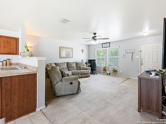 Welcome to 9127 Sycamore Cove, a well-cared-for two-story home tucked into the Chestnut Springs community. This 3-bedroom, 2.5-bathroom home features a spacious and open layout downstairs, where the living area flows into a bright kitchen with a long breakfast bar and an eat-in dining space. The abundance of natural lighting gives this home a warm and inviting feel. Upstairs, all three bedrooms offer ample space and walk-in closets, with the primary suite providing a quiet escape at the end of the day. A generously sized laundry room is located on the main floor for added convenience. Outside, the yard is neatly maintained with plenty of room to stretch out or enjoy time outdoors. The garage door was just replaced. The neighborhood includes access to a small lake and scenic walking and biking trails, all within a short drive to Hwy 151, Loop 410, Lackland AFB, SeaWorld, and a variety of nearby shopping and dining options. This home offers both comfort and practicality in a location that truly makes sense. With just a little bit of TLC, this home is ready for you to make it your own