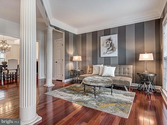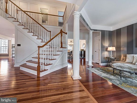 Welcome home to this light-filled NV home in the Villages of Urbana. One step inside and immediately you'll notice the gleaming hardwood floors, 2 story foyer, and custom moldings. 3 levels of finished space boasts over 4,700 square feet of living with 4 bedrooms, 3 and 1/2 baths, and near endless flex space to use as you see fit. Stepping inside enjoy the open floor-plan with plenty of room to move around freely. Gourmet kitchen featuring a gas range, granite countertops, double wall ovens, all in the sought-after open concept of modern living. Upgraded, custom fixtures with shadowboxing, each further enhancing the thoughtfully curated beauty of this home. Opening from the kitchen, a sunroom with floor to ceiling windows and soaring ceilings continues to open the space and greet you with bountiful natural light. There is plenty of space to add a deck and patio right off your sunroom. Additional main floor features include gas fireplace, family, living, and formal dining rooms, as well a study or private office space for the days of working from home. The master en-suite has tray ceilings and dual walk-in closets, complete with recessed lighting and custom organizers. Double vanities and soaking tub are the things dreams are made of. A second ensuite on the upper level is great for guests. The third and fourth bedrooms are comfortable in size and enjoy the third full bath in a classic jack and jill configuration.The lower level adds even more living space as you see fit - crafting, exercise, playroom, et al, while enjoying the convenience of a fifth room to use as a bedroom or whatever suits your needs. Walk-out to the backyard that backs to trees with endless privacy behind. Home is brick front, located in the Villages of Urbana built by NV Homes.