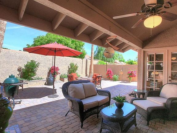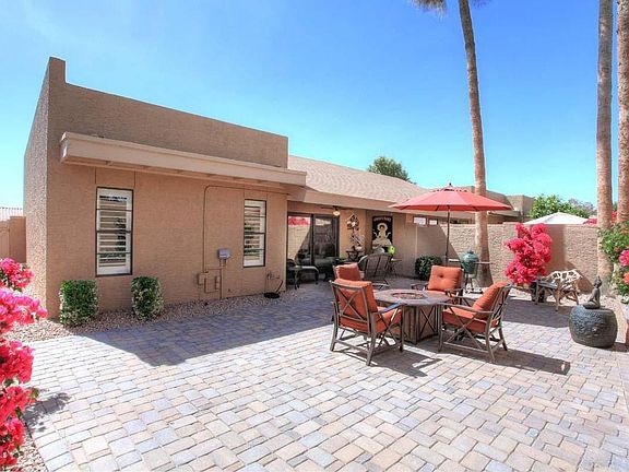 Better than new, move in ready in established Scottsdale neighborhood! Gorgeously remodeled, inside & out, graciously appointed in 2015/2016, single story home features private patio/yard space + 2car garageall for under $300,000! OVER $60k PROFESSIONAL UPDATES! New cabinetry in kitchen and baths, granite, Frigidaire stainless appliances in this modern and easy living floor plan. Great room opens to kitchen with breakfast bar plus expand entertaining options outside onto the private cool north exposure paver patio and spacious yard. Private end unit, with one adjacent neighbor. Lush & green grasses plus community pool in this convenient location near Raintree and 92nd street. Updated finishes include travertine, carpeting, slab granite, nickel hardware, 4'' plantation shutters...