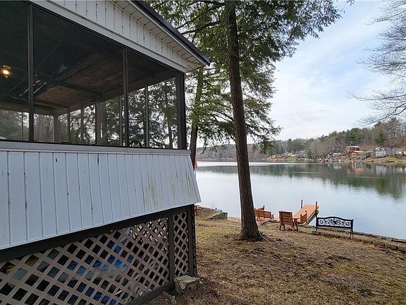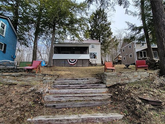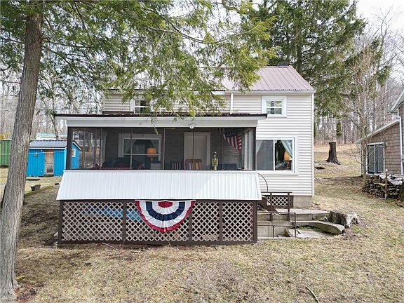 Nestled on the shore of Lake Demons, this turn-key property can be your ticket to endless waterfront enjoyment! This 6 bed, 1 bath property comes fully furnished, so all that is left is for you to show up and enjoy everything Lake Demons and the Finger Lakes region have to offer! Inside, find a kitchen w\ walk-in pantry offering all the amenities of home. A spacious living room / dining area with a walkout to the porch overlooking the water. Upstairs, find a storage area and 5 well-kept bedrooms to rest after a day of enjoyment on the water. Step outside to find a large back yard, that can serve as additional parking. Out front, take in the waterfront views with a private dock, campfire ring and screened porch with plenty of seating space. Additionally, there is a storage area located under the porch that can serve as a private changing space. If this isn't enough already, this property is located in the heart of the Finger Lakes region, home to many famous vineyards, breweries and various hiking opportunities. Come experience everything that this property has to offer, and don't miss your chance to own this gem on Lake Demons!