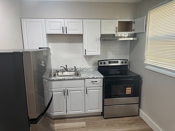 Fresh paintWhite shaker style cabinetsUpdated kitchenStainless steel appliancesRenovated homeNew flooring