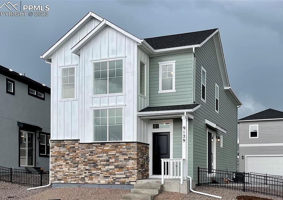 Located in desirable Wolf Ranch with 1st class resort style living and award winning D20 schools. Outdoor concerts, food trucks at the park, miles of walking trails, pool and Wolf Lake make this community a destination. The expert craftsmanship by this top-rated, fundamentally different builder is apparent throughout. The main level space features soaring energy efficient windows spanning both levels for openness and natural light. Cook and mingle with friends in your designer kitchen with 42” stone-grey upper cabinets & quartz countertops. Recharge in the Owner’s Retreat with a spa like ensuite Super Shower with rain head and large walk-in closet. Relax in your HOA maintained, fenced, Xeriscaped private yard on this corner homesite. Designer upgrades galore plus unexpected extras – ceiling fans, active radon mitigation, tankless water heater and much more. Come see this incredible home, built by a family-owned national builder with over 45 years’ experience. Revel Crossing at Wolf Ranch is adjacent to Legacy Peaks Elementary with nearby shopping, dining & the best of Northern Colorado Springs. February move-in ready!